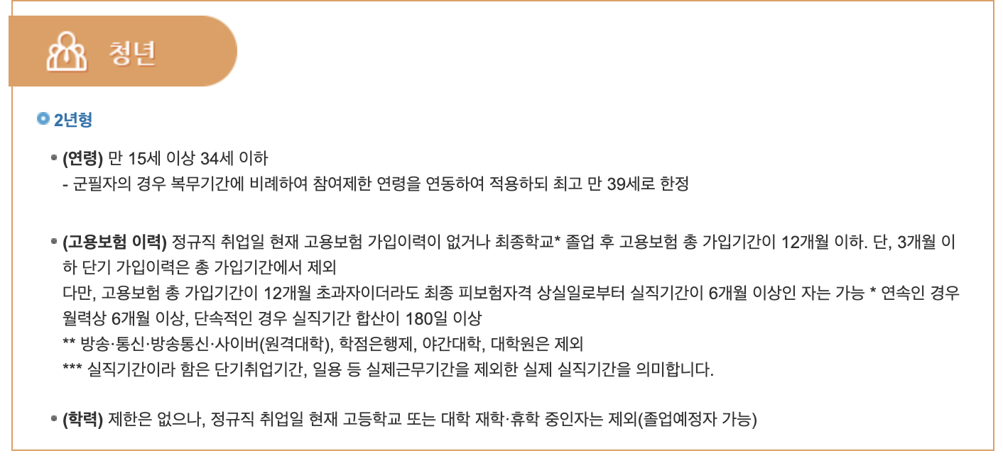 청년들은 2년형을 가입하게 될 경우 만 15세 이상에서 34세 이하로 가능합니다.