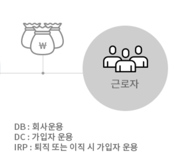 회사, 즉 사용자가 근로자들에게 퇴직급여 재원을 금융회사[퇴직연금사업자]들에게 적립을 하게 되면, 금융회사가 근로자[가입자]가 퇴직을 할 경우 연금 또는 일시금으로 근로자에게 퇴직급여를 지급하게 되는 것이 퇴직급여제 도라 고합니다.