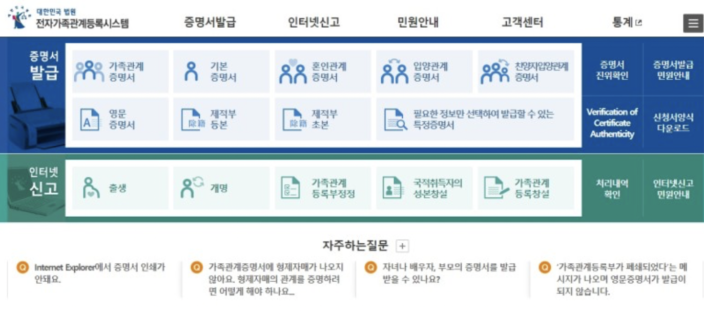 요즘 동사무소를 방문해서, 증명서 발급을 안해도 되면서 인터넷을 통해 발급받을 수 있는 서류가 정말 많습니다. 그 중 하나가 가족관계증명서인데요. 가족관계증명서란, 자신의 가족관계가 나오는 서류이면서 주택청약 또는 부양 가족이나 자녀 확인등과 같은 많은 곳에서 이용이 가능합니다. 매번 동사무소에 방문을 하는게 어려우니, 이번에 인터넷으로 발급하시는 방법을 알고 계시면 유용하게 사용하실겁니다.