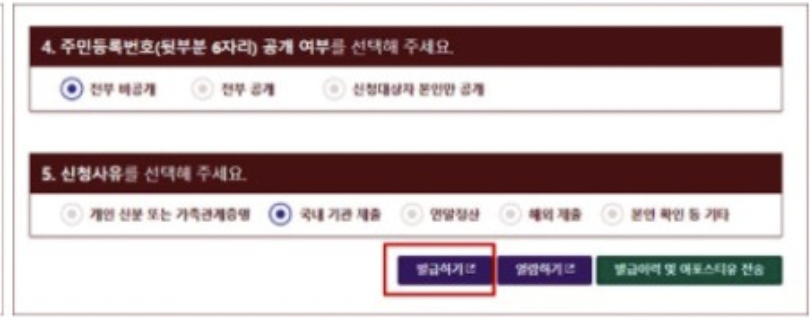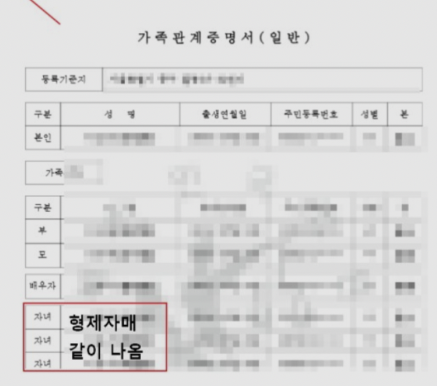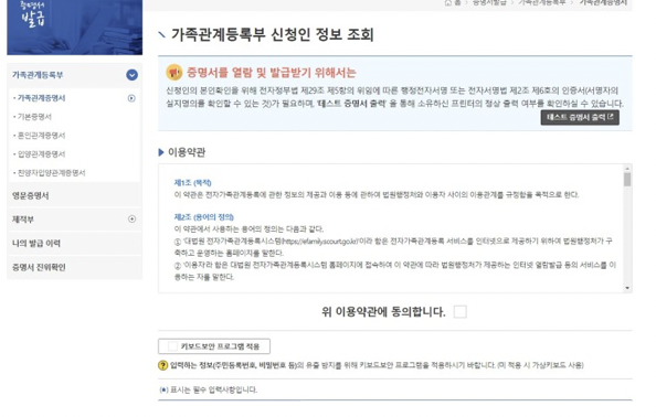 이 절차에서는 혼인관계 증명서 및 입양관계증명서를 표시할 수 있으니 잘 선택을하시기 바랍니다.