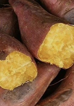 고구마는 식이섬유와 탄수화물이 풍부하며 특히 불용성 식이섬유가 많으며, 변비에 도움이 됩니다.
