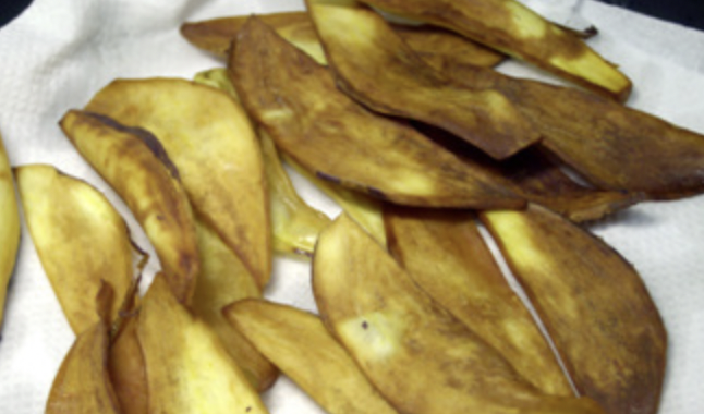 - 고구마를 깨끗이 씻은 후 물기를 키친타월로 제거합니다.