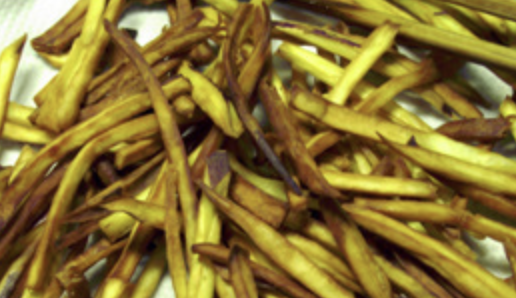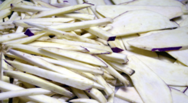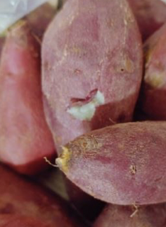- 고구마의 양 쪽 끝을 잘라서 흙이 묻은 부분을 제거합니다.