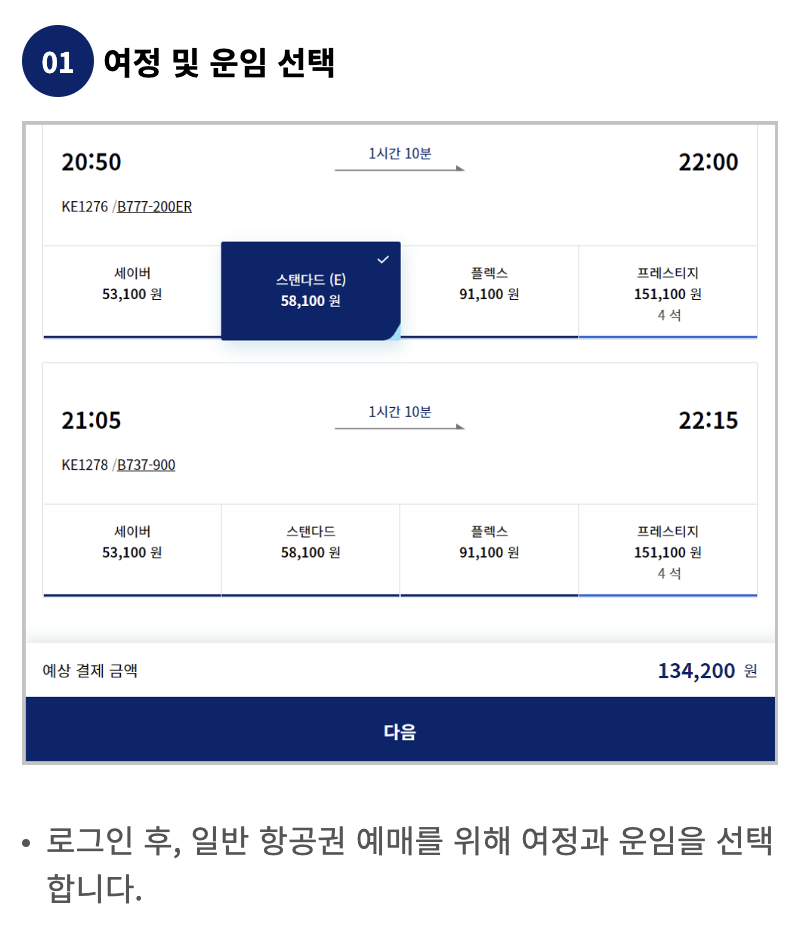 2. 대한항공 마일리지 사용법 - 좌석 승급 보너스