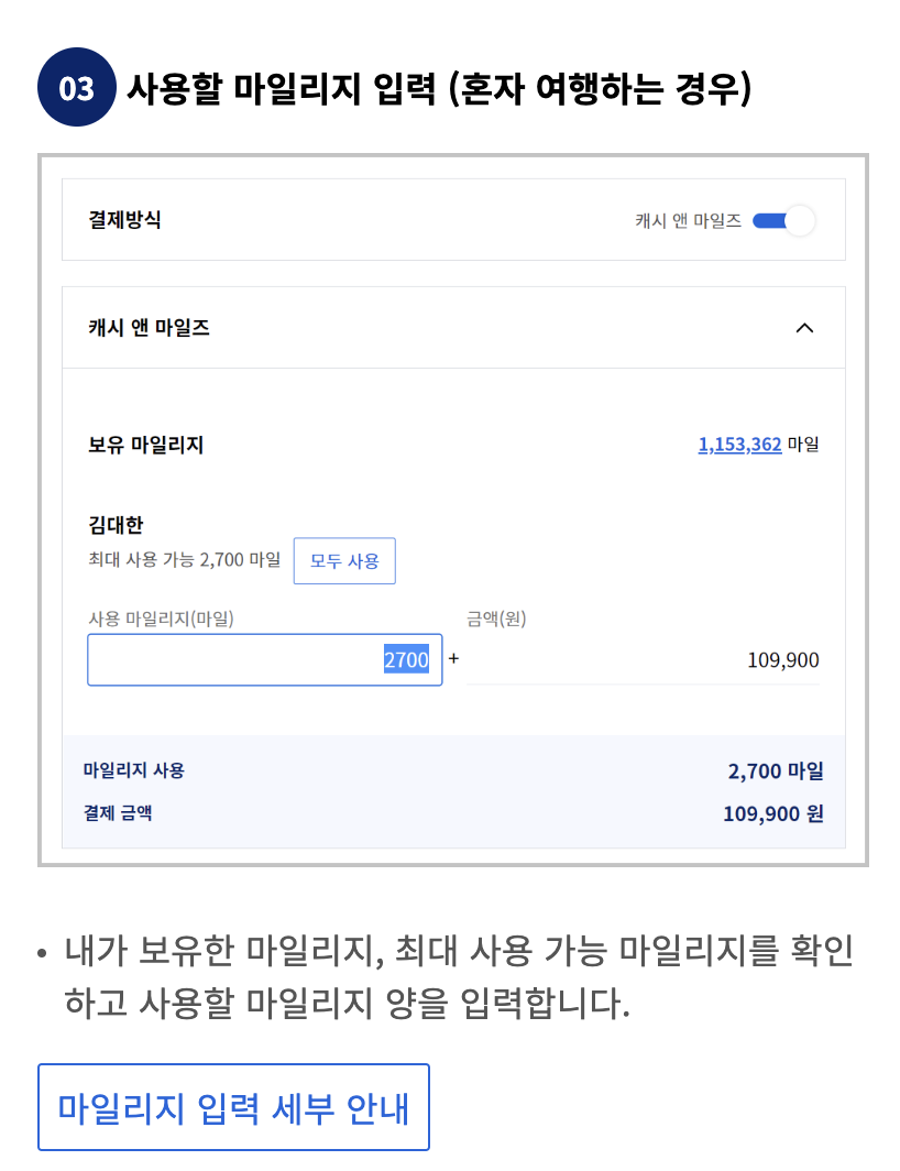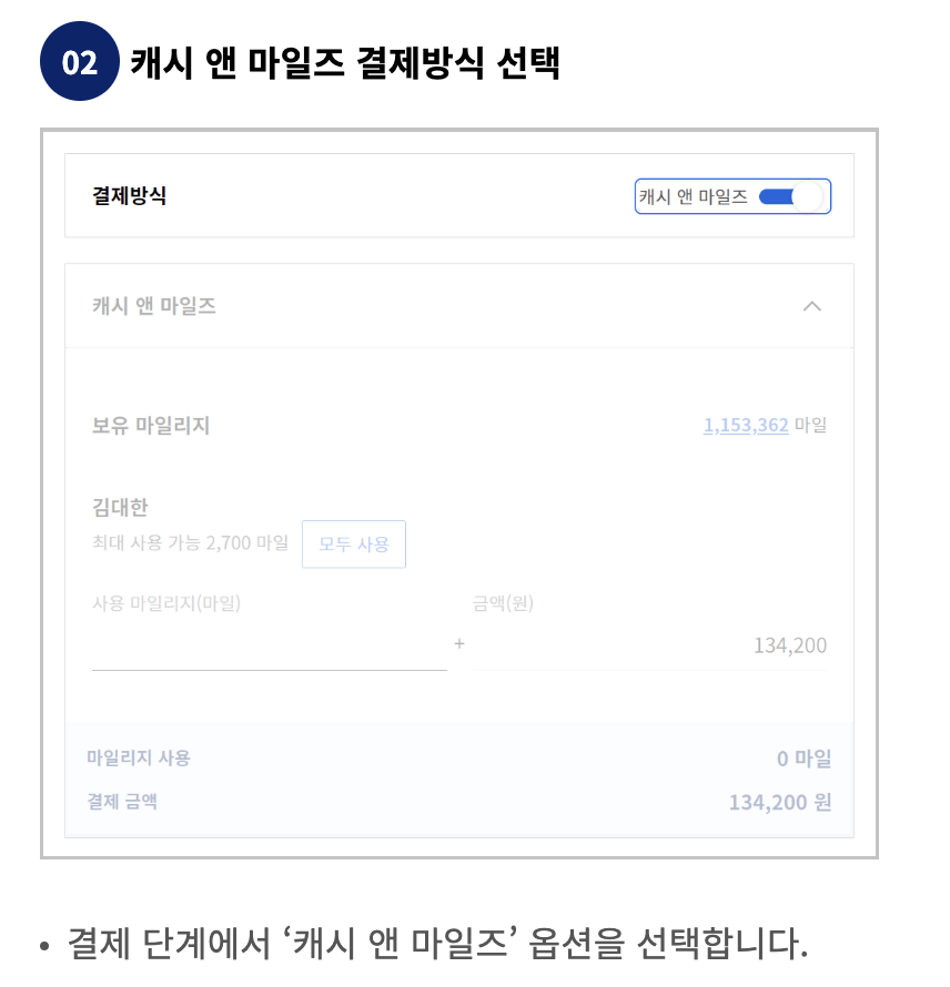 3. 대한항공 마일리지 사용법 - 캐시 앤 마일즈 이용 방법