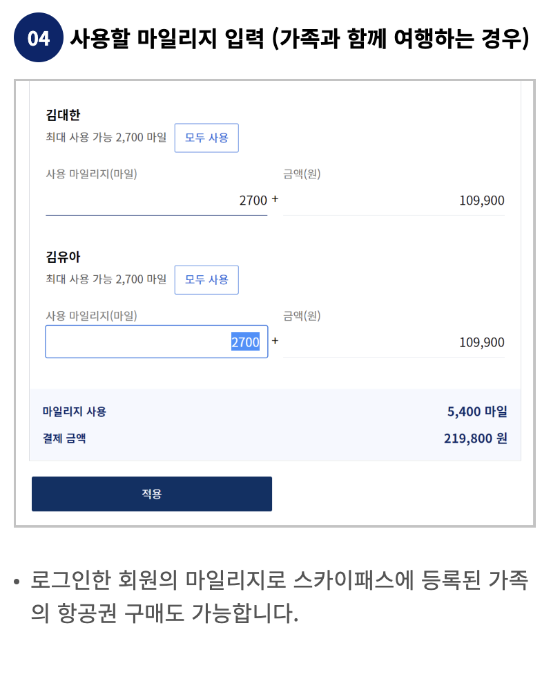대한항공 가족 마일리지 사용방법