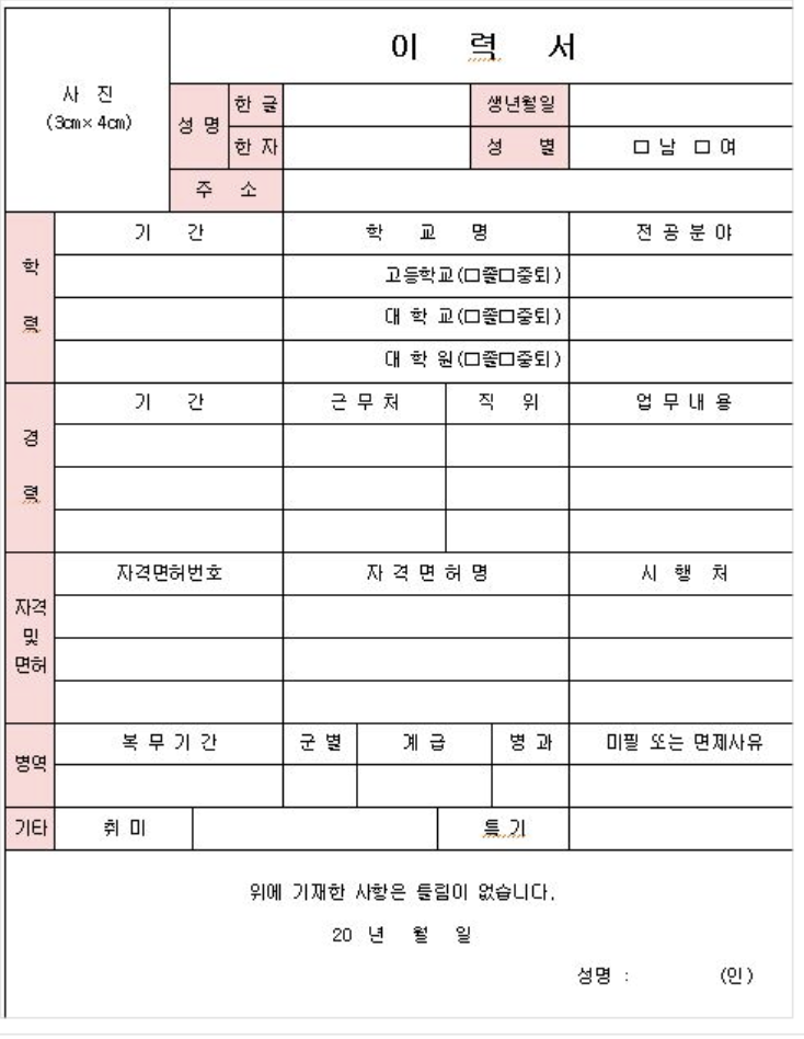 | 이력서 양식 무료다운 (24년 최신판) (0) | 2024.03.08 |