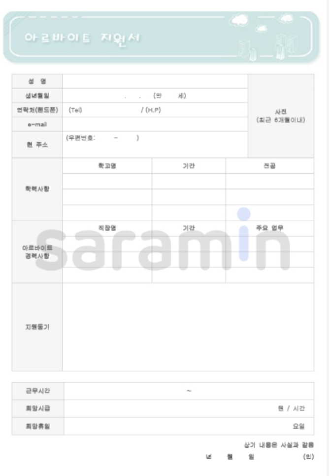 더불어 참고할만한 포인트는 다양한 이력서 작성 팁과 예시를 찾아보시는 것입니다. 특히, 해당 알바와 관련된 업무 경험을 강조하고, 문서를 카피하지 않고 직접 작성해 주시면 더욱 돋보일 것입니다. 행운을 빕니다!