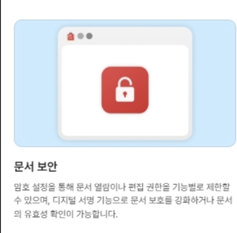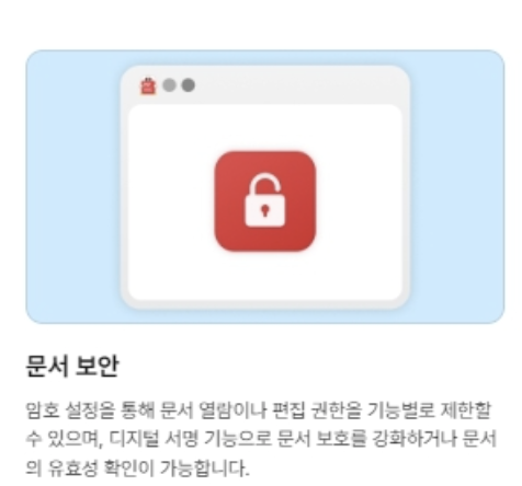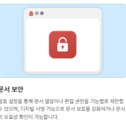 디지털 서명 기능으로 문서 보호 및 유효성 확인이 가능합니다.