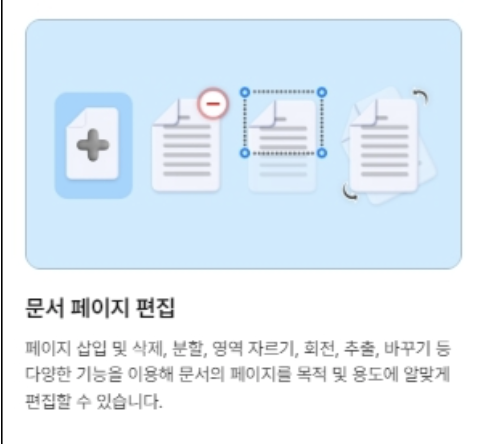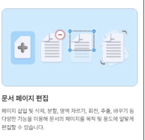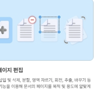 페이지 삽입, 삭제, 분할, 영역 자르기, 회전, 추출, 바꾸기 등 다양한 기능을 제공합니다.