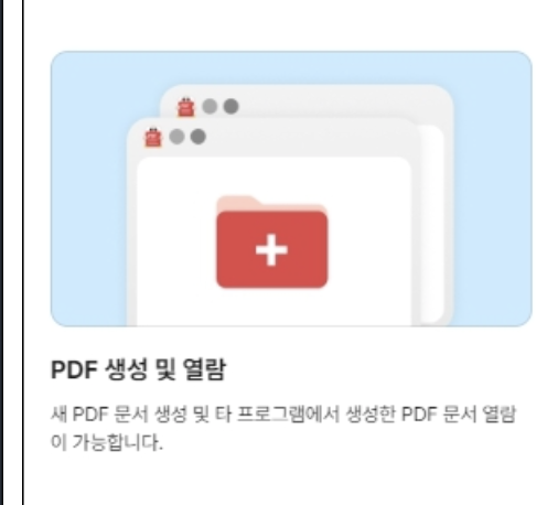 새 PDF 문서 생성 및 다른 프로그램에서 생성한 PDF 문서 열람이 가능합니다.