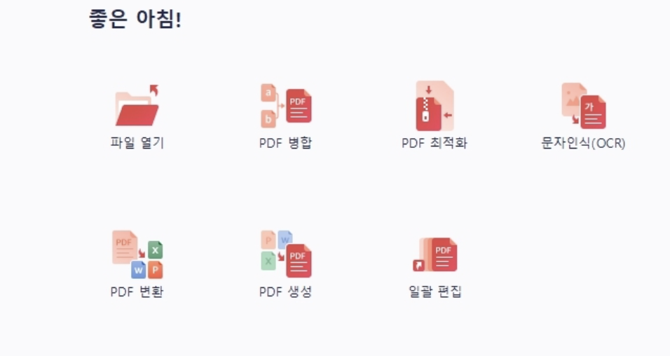 - 파일 열기: 메인 화면에서 "파일 열기" 옵션 등을 통해 원하는 작업을 선택합니다.