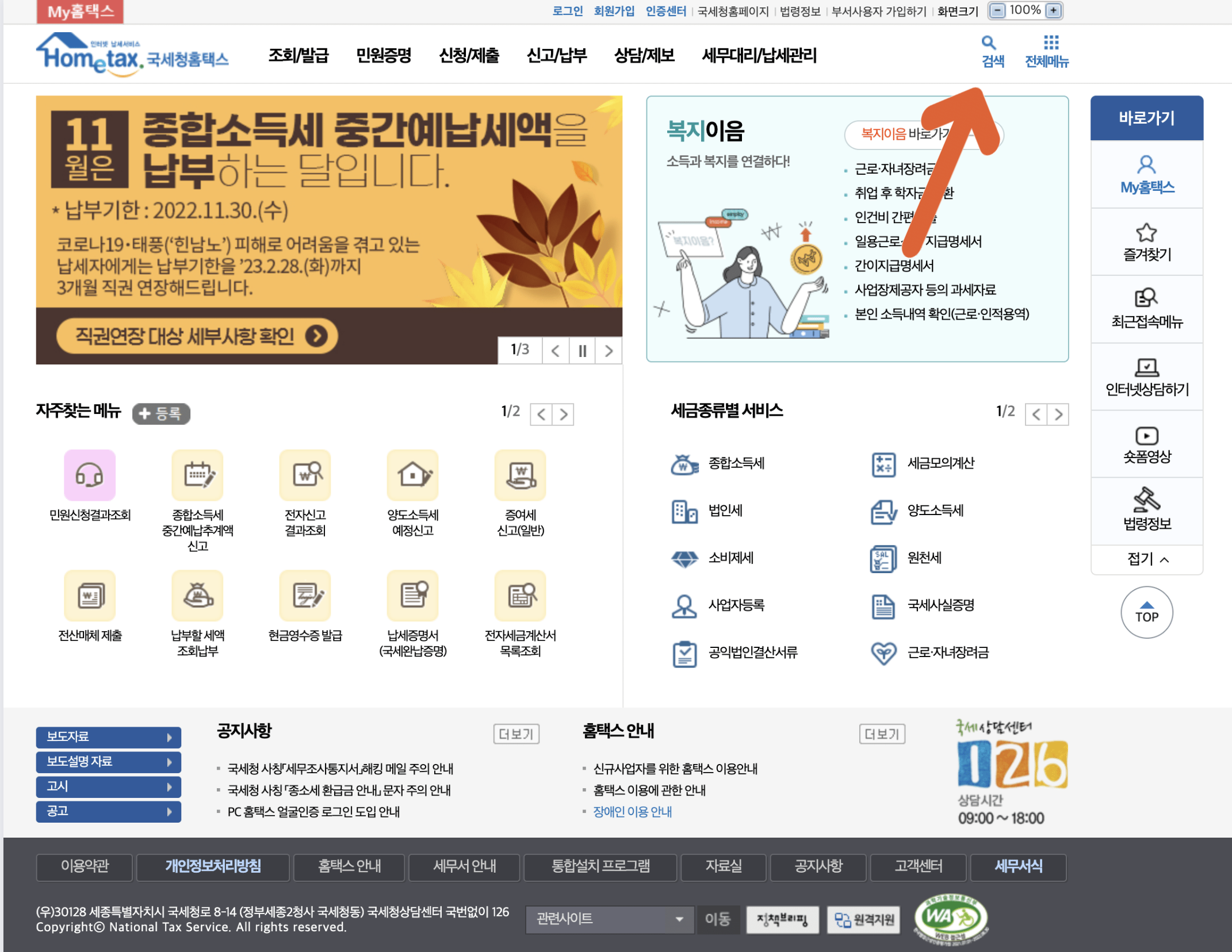 3. 홈택스 사이트에서 '검색'을 눌러주세요.