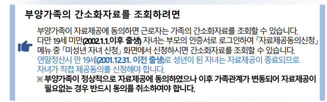 | 부양가족의 자료 조회를 위해서는 자료 제공 동의 절차가 필요합니다. 자료제공동의방법 보기 |