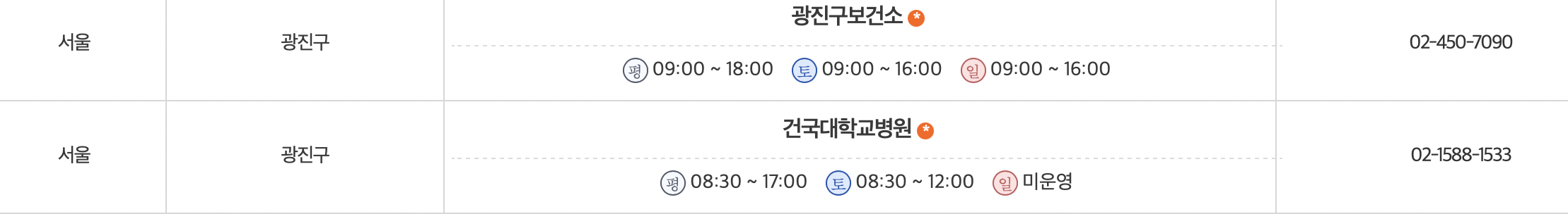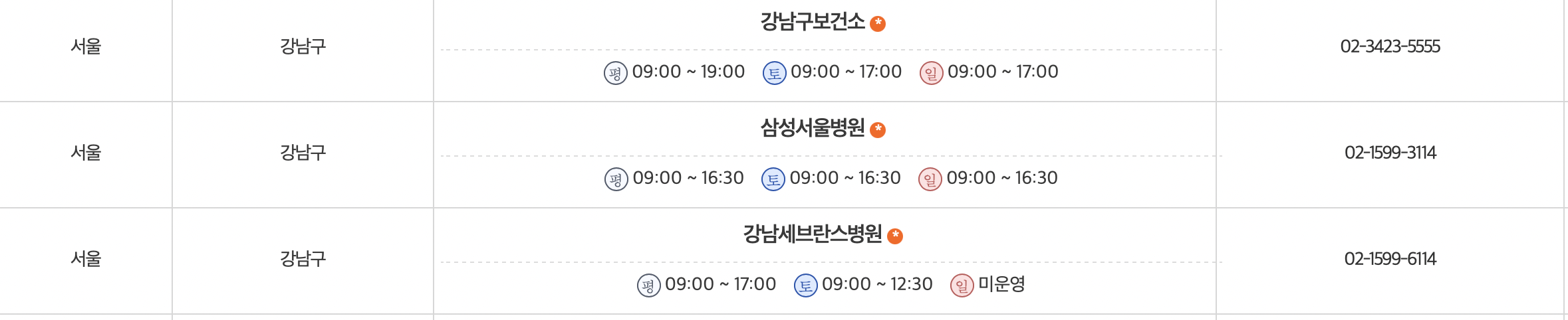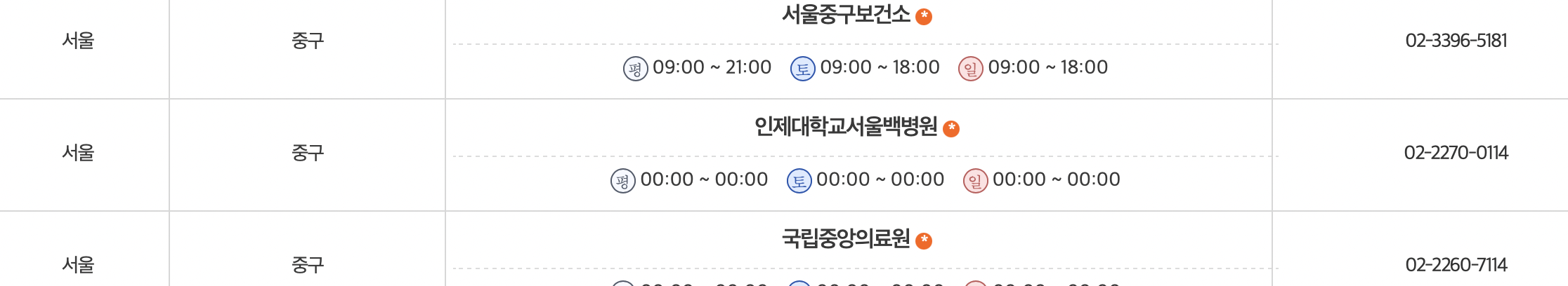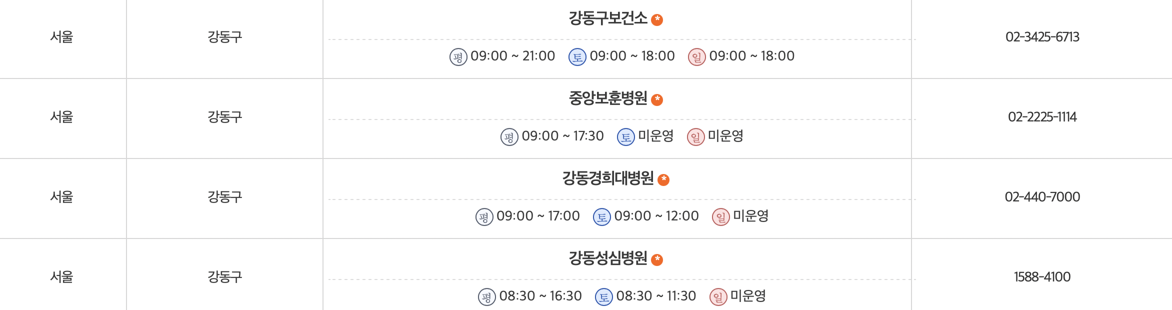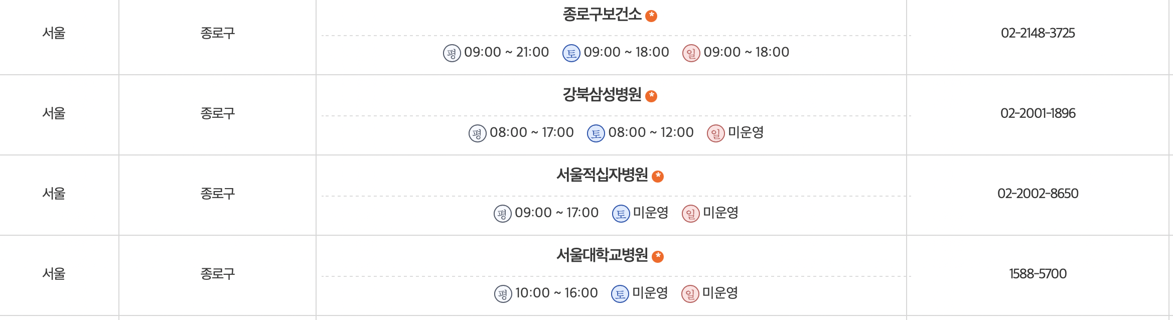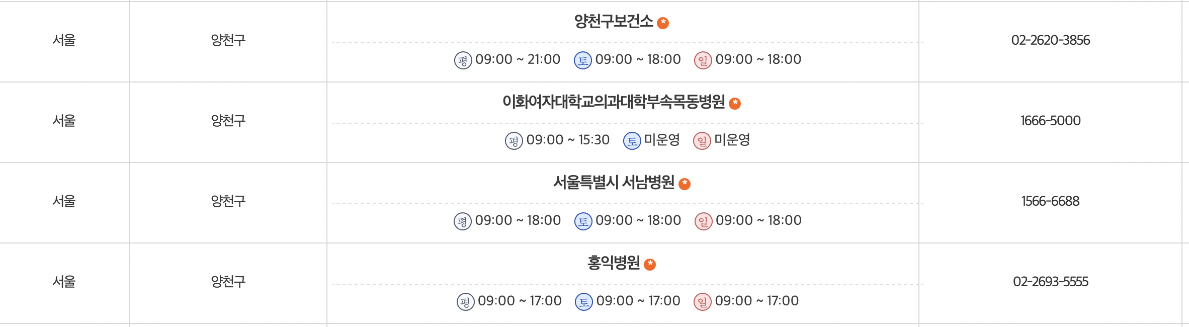 # 선별진료소 찾기 [ 수도권은 control + F or Command + F 눌러 원하시는 "지역명" 검색 ex) "강남구" 검색]