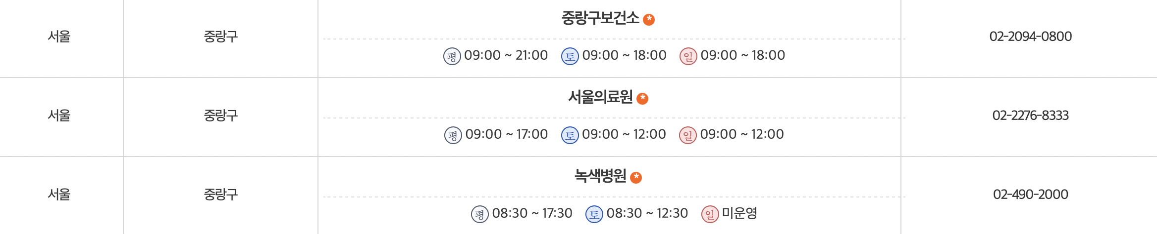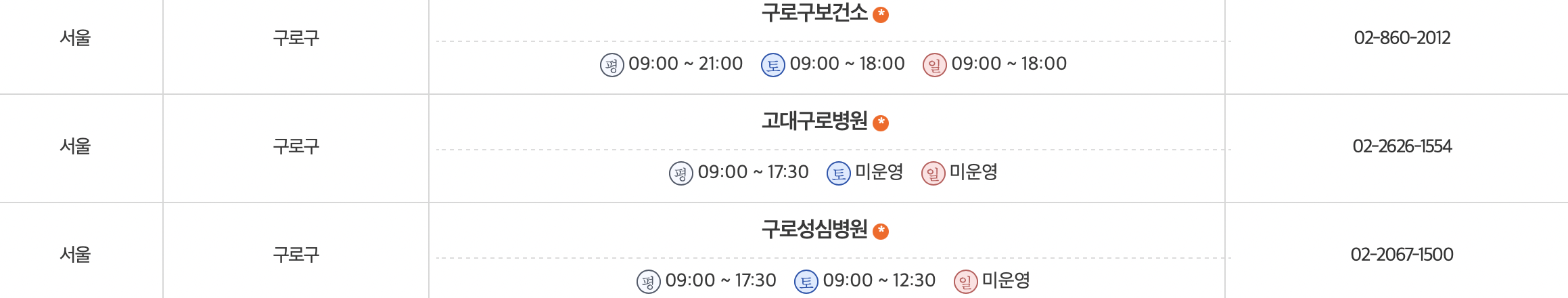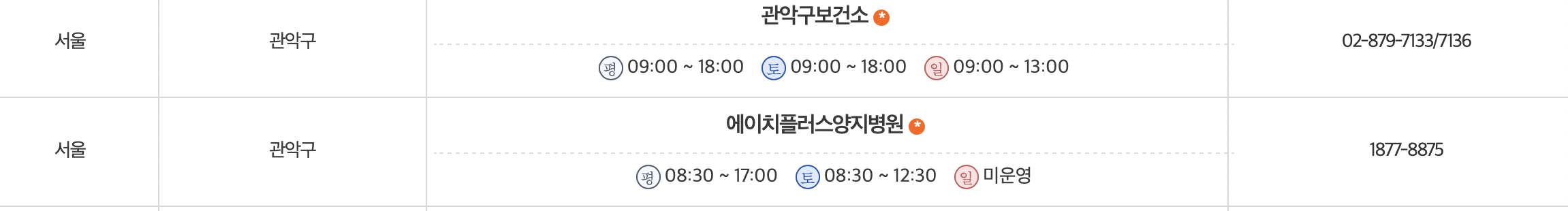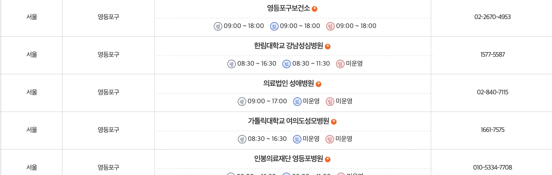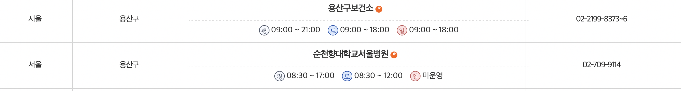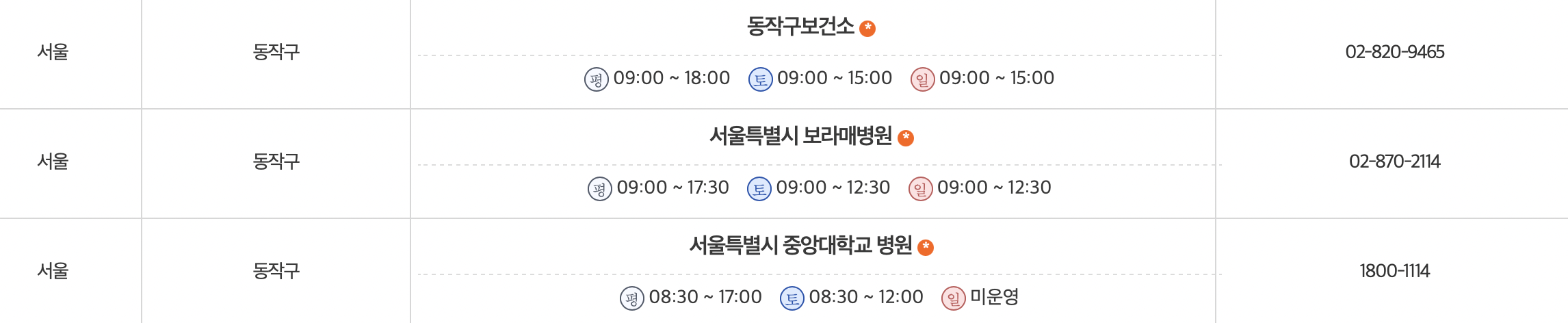 # 선별진료소 찾기 [ 수도권은 control + F or Command + F 눌러 원하시는 "지역명" 검색 ex) "강남구" 검색]
