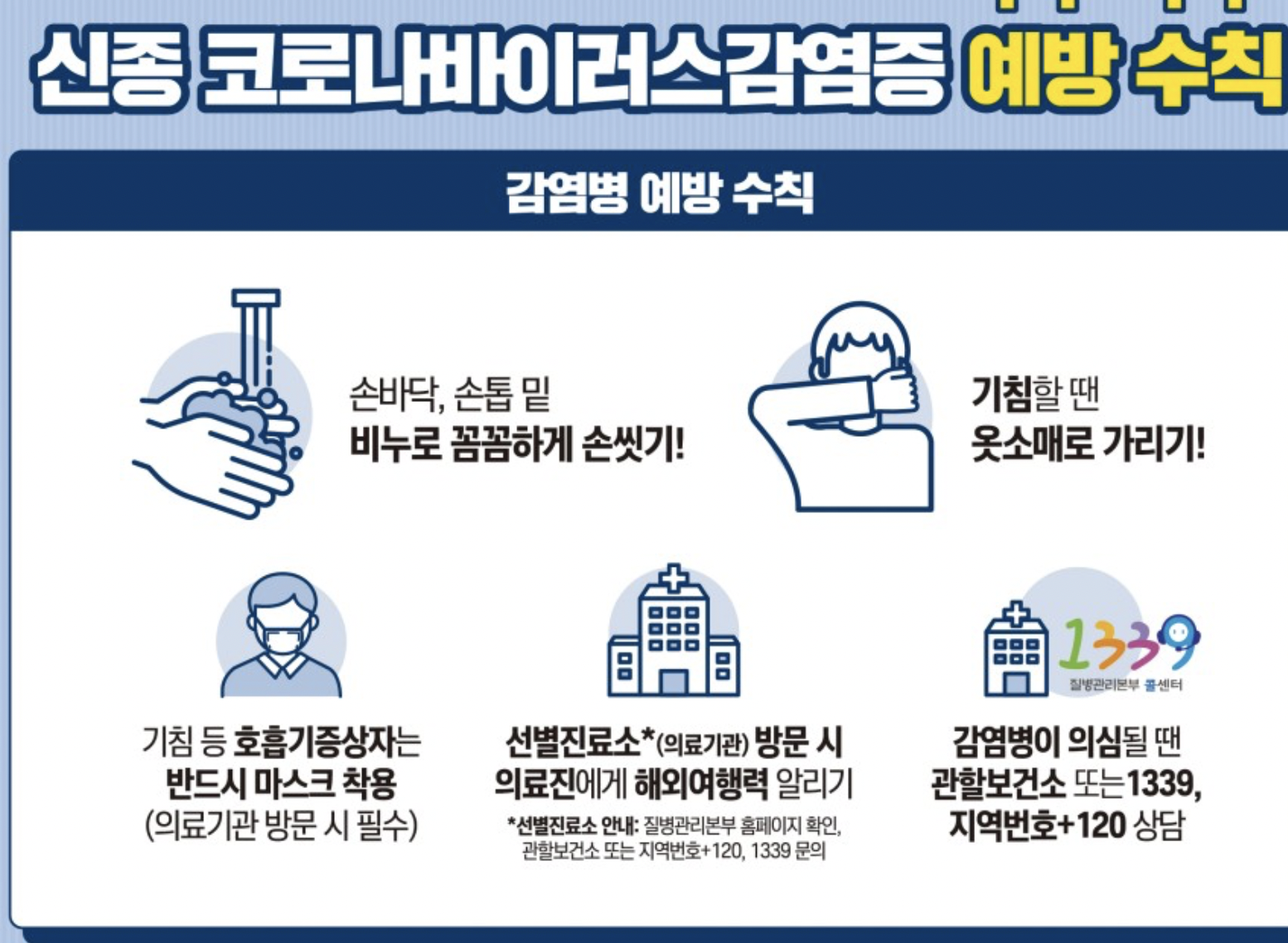 * 만약 코로나 감염 증상에 의심이 될 시에는 관할 보건소 또는 1339 콜센터에 상담을 받으신 후 선별진료소를 꼭 방문하세요 !