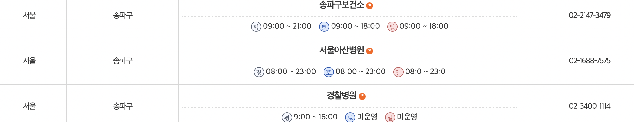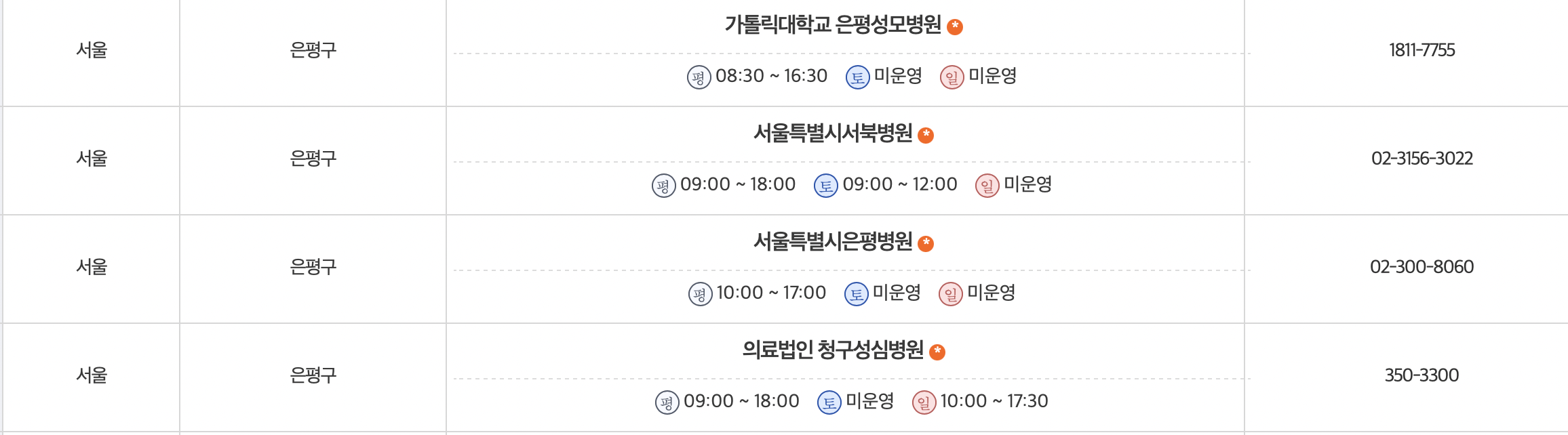 (선별진료소는 평일 18시 이후 토요일과 일요일/공휴일에 선별진료소 방문 시 해당기관의 운영시간의 유선 확인 필요합니다.)