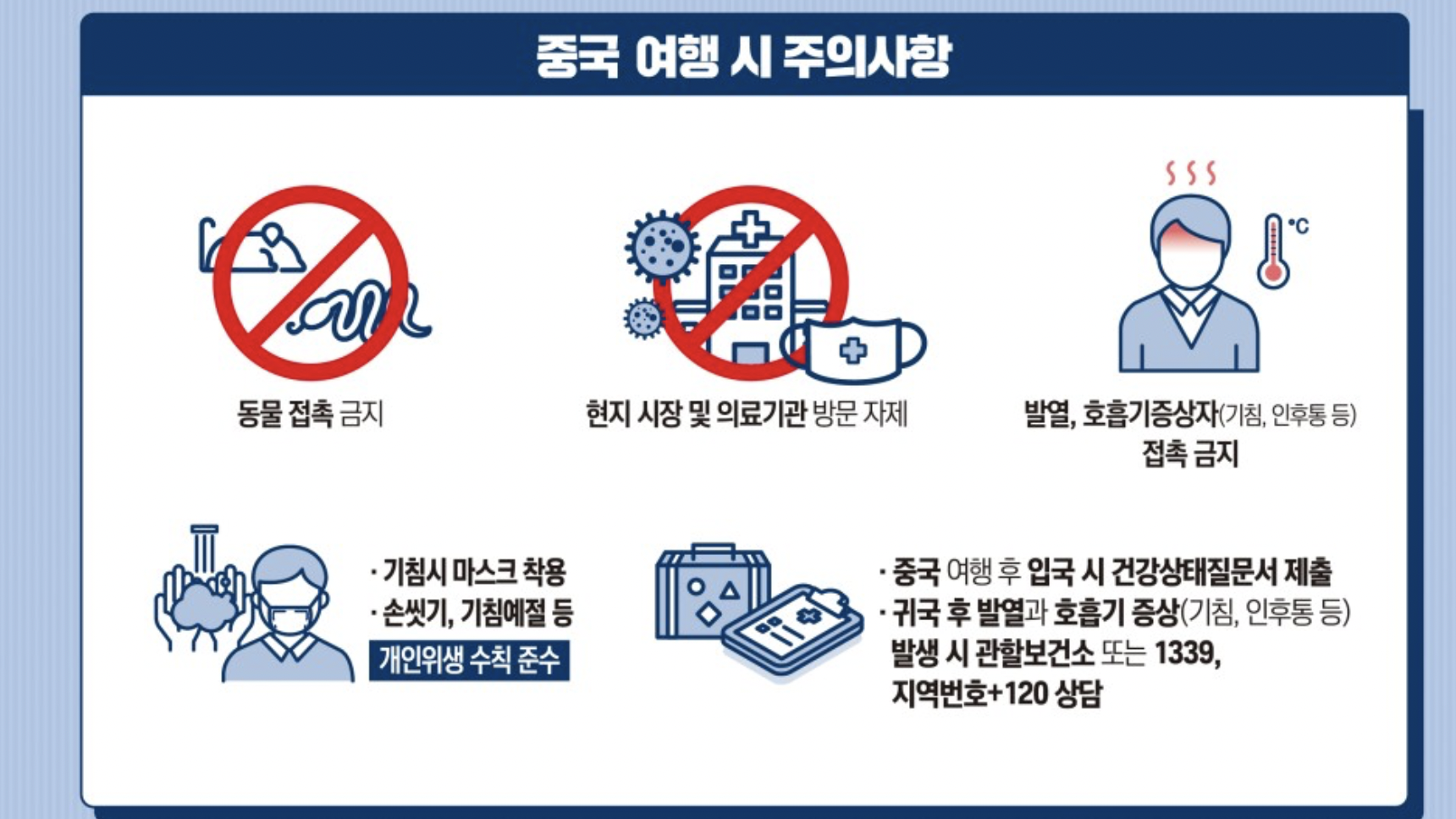 - 선별진료소를 방문 시 의료진에게는 해외여행력이 있는지 알려야 합니다.