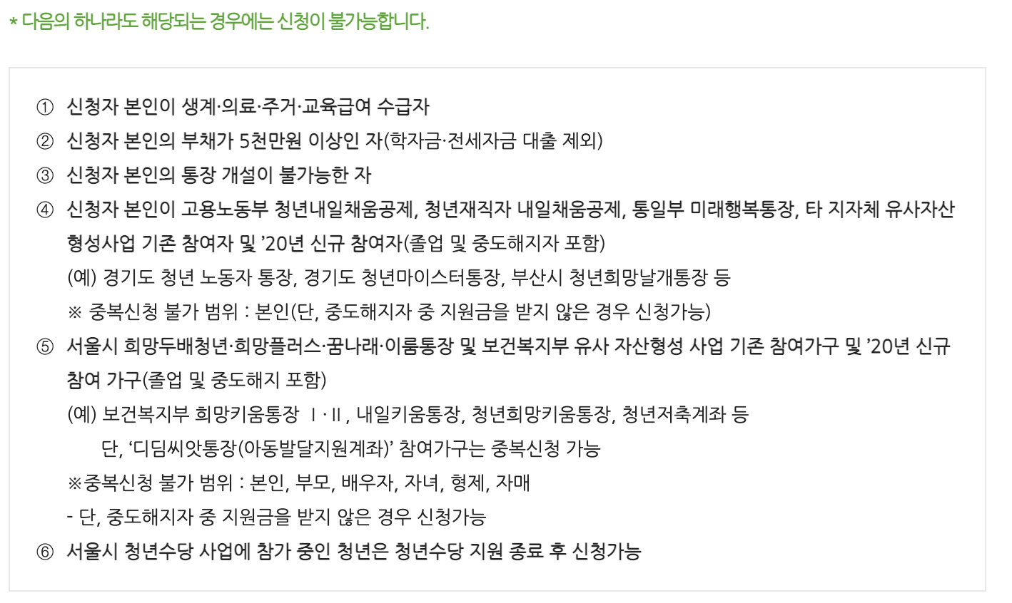 그리고 위와 같은 사유를 가지고 계신 분들은 신청사 유가 되지 않으니 참고하시길 바랍니다.